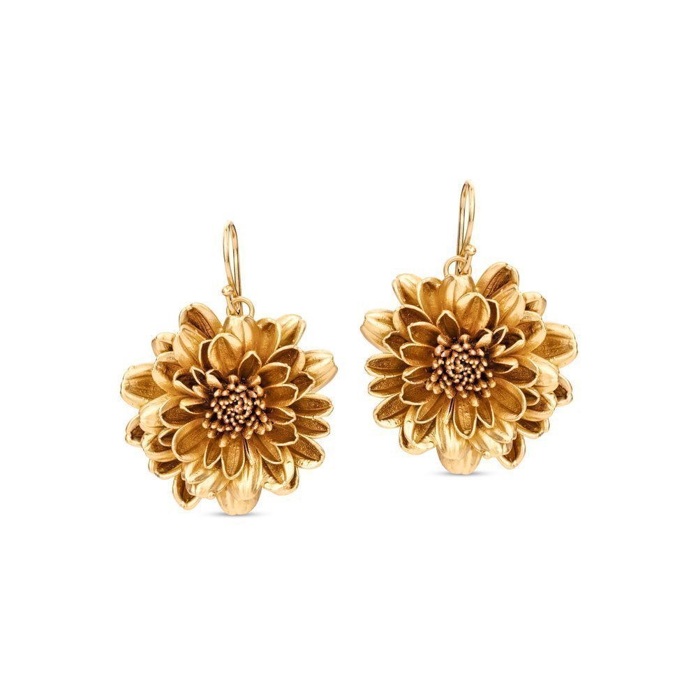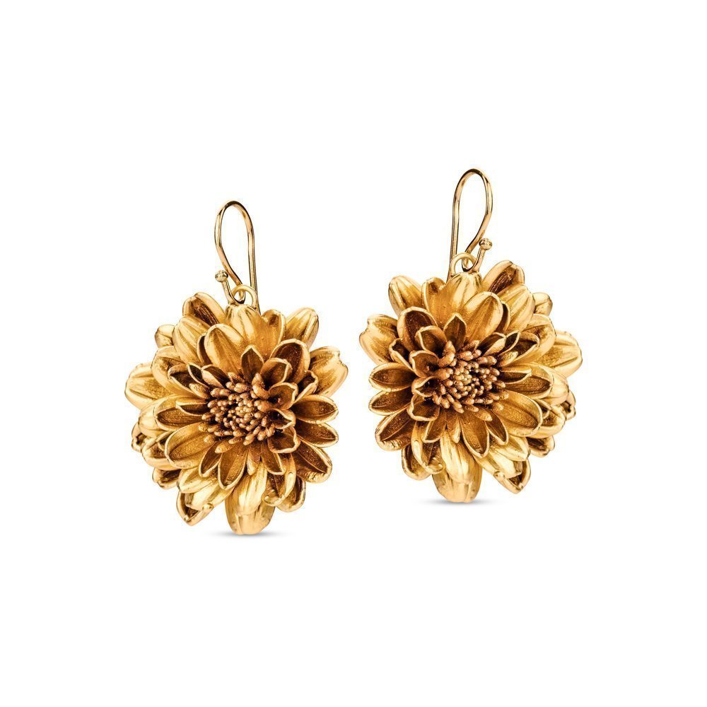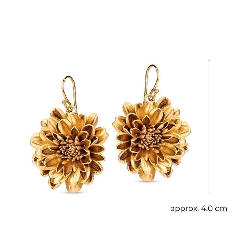 Cercei handmade din crizantemă naturală placaţi cu aur 24K, 5 micron. Diametru: approximativ 3,2cm. Tortiţe din argint veritabil. Nickel free...
